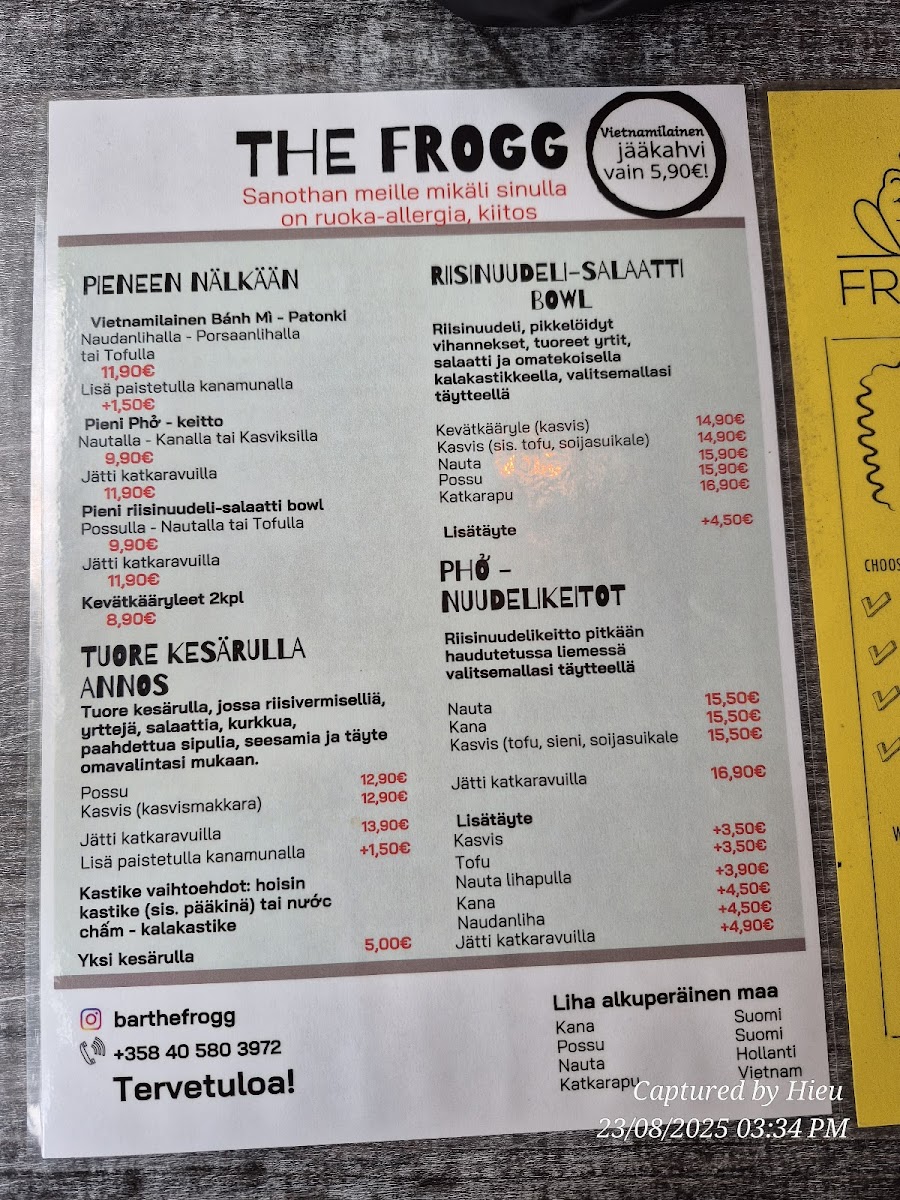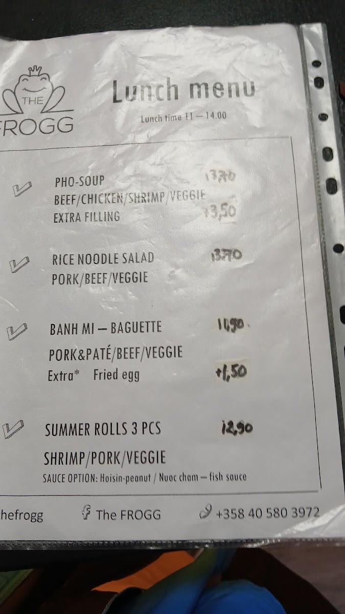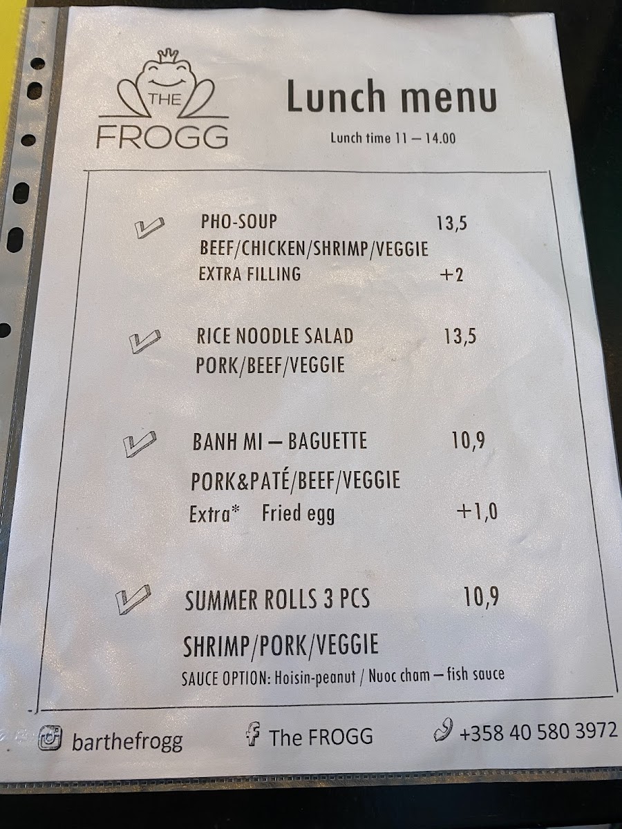 The Frogg Menu
